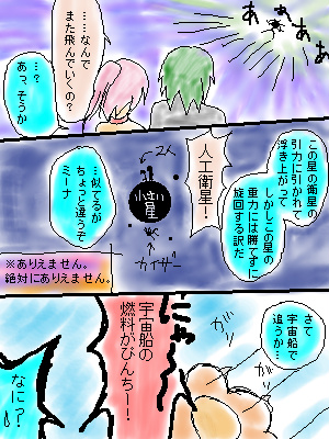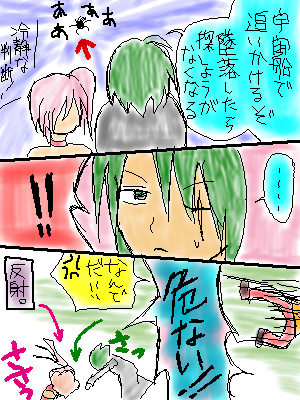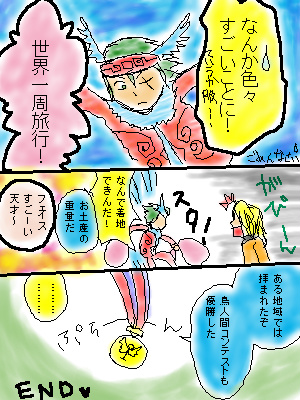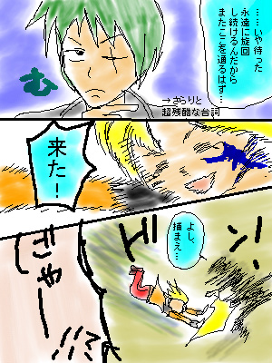 *アップロード画像 ![]() 蒼城 2005/4/2 (Sat.) 23:26:52 蒼城 2005/4/1 (Fri.) 21:43:00 …普通はここで落ちてきて終わるはずですが…。 あと4,5P分あほなことをやらせてください(……おい…) それでは失礼!!!(逃走) 続きまだ描いてません。土日中に描きまス -------------------------------- 本当に終わらずに続くとは…(笑) Re:終わりません(色つき) Re:終わりません(色つき) |