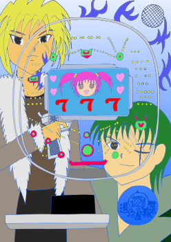 いろんなアニメがパチンコになっているので退治屋もそろそろパチンコになってもいいんじゃないかなぁと思いましてパチンコしないももたんが広告を参考に絵を作ってみました