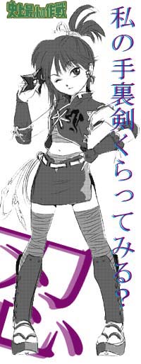 ![]() 黒須 2005/12/13 (Tue.) 20:17:34 たぬさんへのお礼絵のつもりだったんですが、くだらないネタ絵になってしまいました…(しかもネタ元は蒼さんだったり) 一応私が描いたカレンダー絵のその後、です。 F「(ム…恋愛とは、ここまでせねばならぬものなのか…)」(←明らかに「宇宙武術大全」はカバーだけ・笑) K「フェイス!もう行くぞ!」 M「カイザー、フェイスは凄く真剣に勉強の最中だニャ。カイザーとは大違いだニャ」 K「何だとバカ猫〜!」 M「バ…、バカイザー粉砕張り手〜!!」 F「(果たしてあんなあいつらに恋愛ができるんだろうか…やはり俺がこうして少しでも勉強するしかないのか…)」 こうして一人で勝手に悩んでいるフェイスなのでありました。ちゃんちゃん。 Re:読書のフェイス Re:読書のフェイス Re:読書のフェイス なんの…♪ Re:読書のフェイス Re:読書のフェイス コメント多謝♪ Re:読書のフェイス フェイスは Re:読書のフェイス Re:読書のフェイス Re:読書のフェイス |