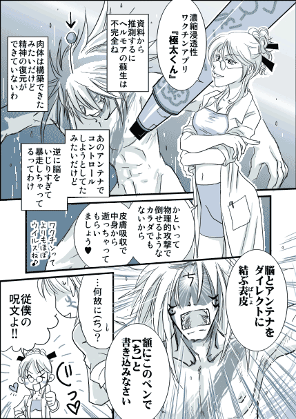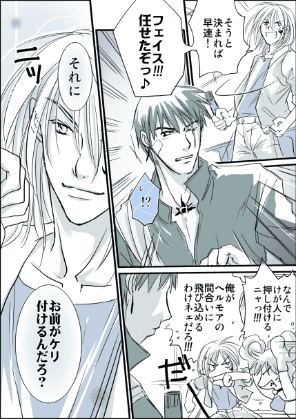 ![]() スミヨシ 2006/9/19 (Tue.) 22:14:32 つなぎページをもう一ページ描いてからUPしようかと思いましたが 氏モ妄想に蒼城さんが困ってるから 先に出しときますわー(*´∀`*) フェイスは次のページで描くよー(笑) あ、ちなみに、成分の理屈は適当ですw Re:ま、いっか(^_^;) 「ち!!」 従僕の呪文(^_^;) Re:ま、いっか(^_^;) Re:ま、いっか(^_^;) |